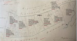 Merging the land records with the “Angelegenheiten der evangelischen Kirchen-Gemeinde Gembitz Hauland 1875 – 1911 (a tax on the property to support the church) the owners, approximate locations, and size of each of the eight properties on February 29, 1852 can be inferred above. An 1862 property map is used as a background. Property 1 … Continue reading The Original 8 Properties